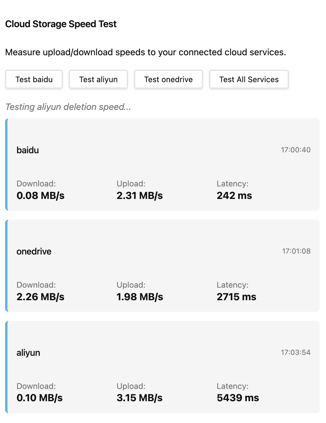 - 时延:网盘API的访问时延,基本可以等价于一次同步所需要的最小时延。
